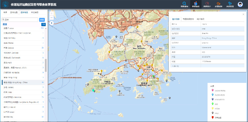 青岛琦晟海洋科技有限公司(简称琦晟海洋)开发的VK-DAIS-GOS型全球海洋站数据采集与整合系统实现了GLOSS、NEAR-GOOS、美国海洋站、IOC、香港天文台以及其他WMO、欧洲、美洲、澳洲、亚洲等国际组织、国家或机构网站和FTP发布的实时/延时全球海洋站(点)资料的下载、解析、预处理检验、质控处理、代码转换、标准格式转换以及基于数据存储。基于数据库和GIS平台的实时可视化监视和异常数据警示,并通过对世界大洋重点区域异常数据警示功能建设,进一步提升海洋防灾减灾能力。