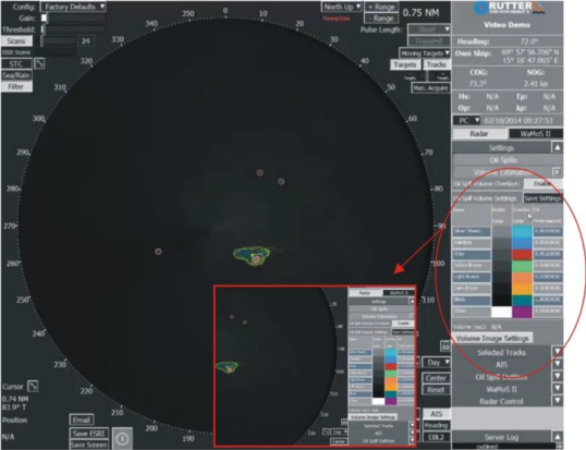 在各种海况、天气条件下,无论白天还是晚上,sigma S6溢油检测系统可以检测到小至5L的浮油,并可检测距离雷达站点4海里范围内的溢油。溢油检测系统在海洋表面检测到可能的浮油时会自动发出警报。一旦确认发生溢油,该系统就会自动勾勒出溢油的范围,显示其随时间的漂移和扩散,并对溢油量进行计算估计。