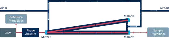 高精细腔使激光反复通过光腔,光程数公里,信号显著增强。